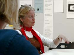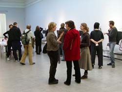 the notice-board together with visitors at the exhibition, where the documentation